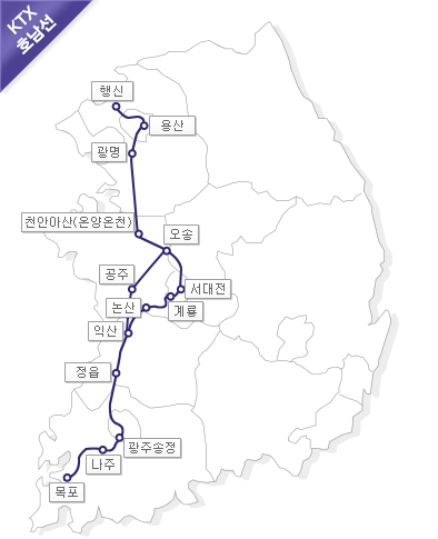 KTX 호남선은 서울과 광주송정을 잇는 노선으로, 호남 지역 주요 도시들을 빠르게 연결하는 교통의 중심입니다. 서울에서 광주송정까지는 약 1시간 50분이 소요되며, 정차역으로는 천안아산, 익산, 전주 등이 있습니다.